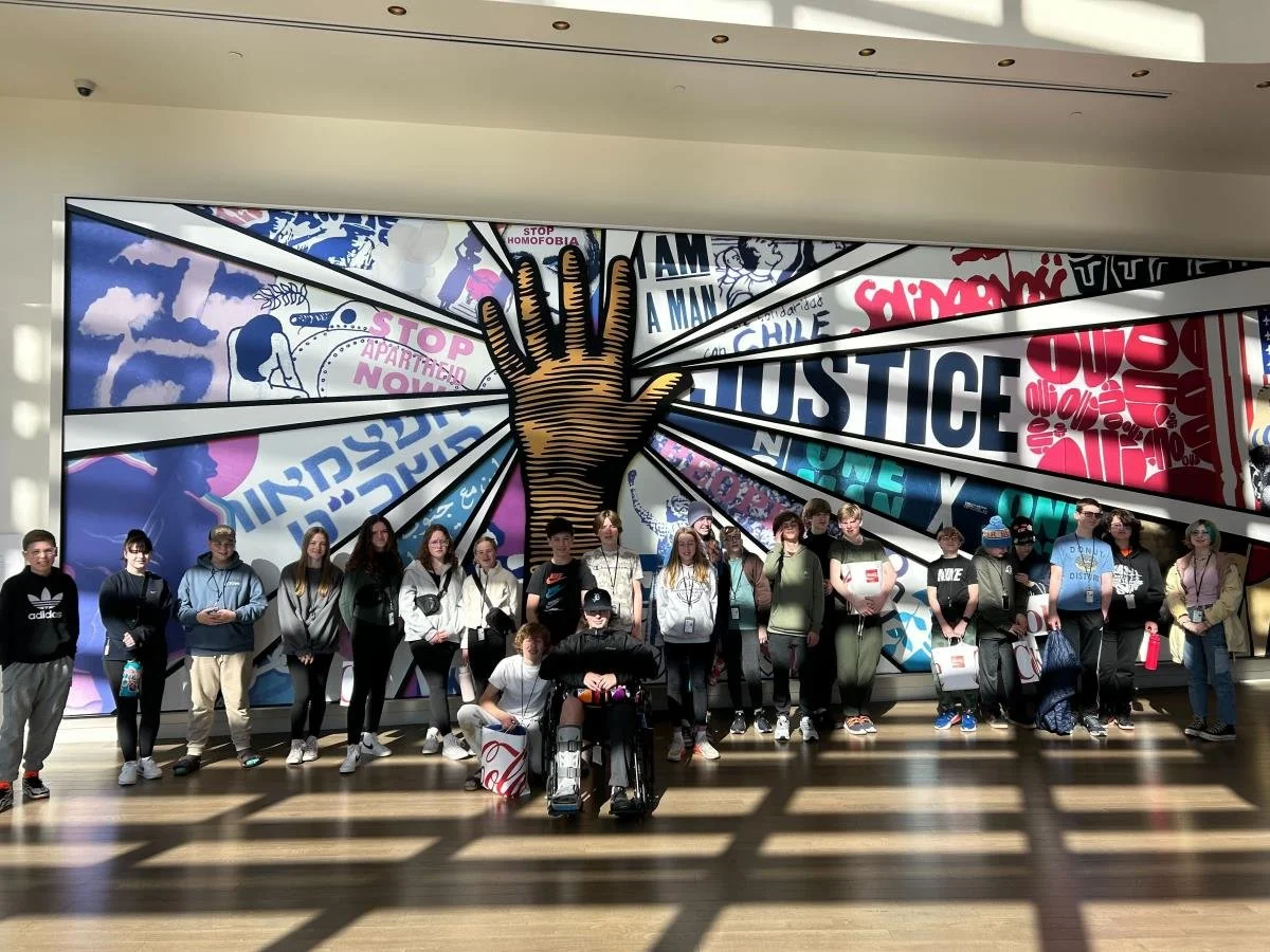 Before leaving for our trip, we read the book “Just Mercy” by Bryan Stevenson. The book recounts his experience as a young lawyer working on death row in Alabama. The Legacy Museum and The National Memorial for Peace and Justice were started by Bryan Stevenson. He also founded EJI, the Equal Justice Initiative, a human rights organization in Montgomery. EJI, the museum, and the memorial are all paths for justice. The museum and the memorial work toward justice by providing the history and identification of those who lost their lives unjustly, either from enslavement, lynching, or unjust incarceration. EJI works to “end mass incarceration and excessive punishment in the U.S..”