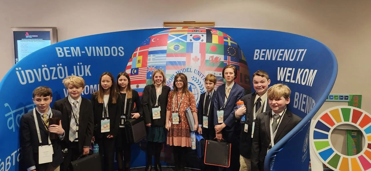 During their final year of Elementary, sixth-year students have the opportunity to act as UN delegates in the Montessori Model United Nations program, where they collaborate with students from five continents! In September, they begin studying their selected country and they take that country's perspective in solving some of the world's biggest issues. This year, for example, our learners looked for solutions to issues such as the implementation of the United Nations convention to combat desertification, empowering youth in inclusive and sustainable food systems, and disaster risk reduction, among other topics. The learners spend many hours researching and writing position papers for their topic. Once they have laid out their country's position they write speeches to be delivered in their committee sessions, which are then shared with the Secretary General of the United Nations. This is huge work- the work of creating a pathway to world peace! There are no awards for the best position paper or highest quality speech, it is truly a collaborative experience. We are raising the leaders of tomorrow. I encourage you to learn more about how the Montessori Model United Nations helps students take part in our global community.