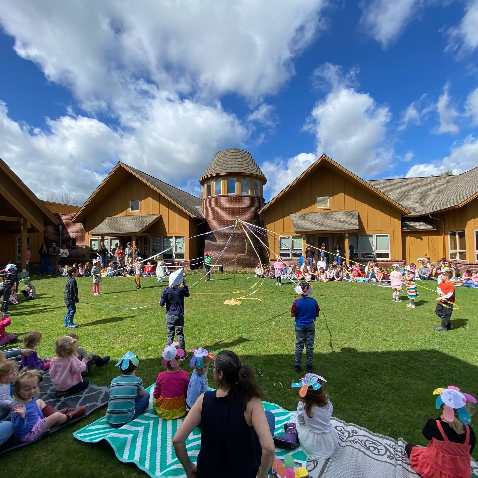 We welcome spring with our May Day celebration! The kindergartners dance around the maypole and we sing together. Kindergarteners play a special role in this event, so families of kindergarteners are welcome to attend.
