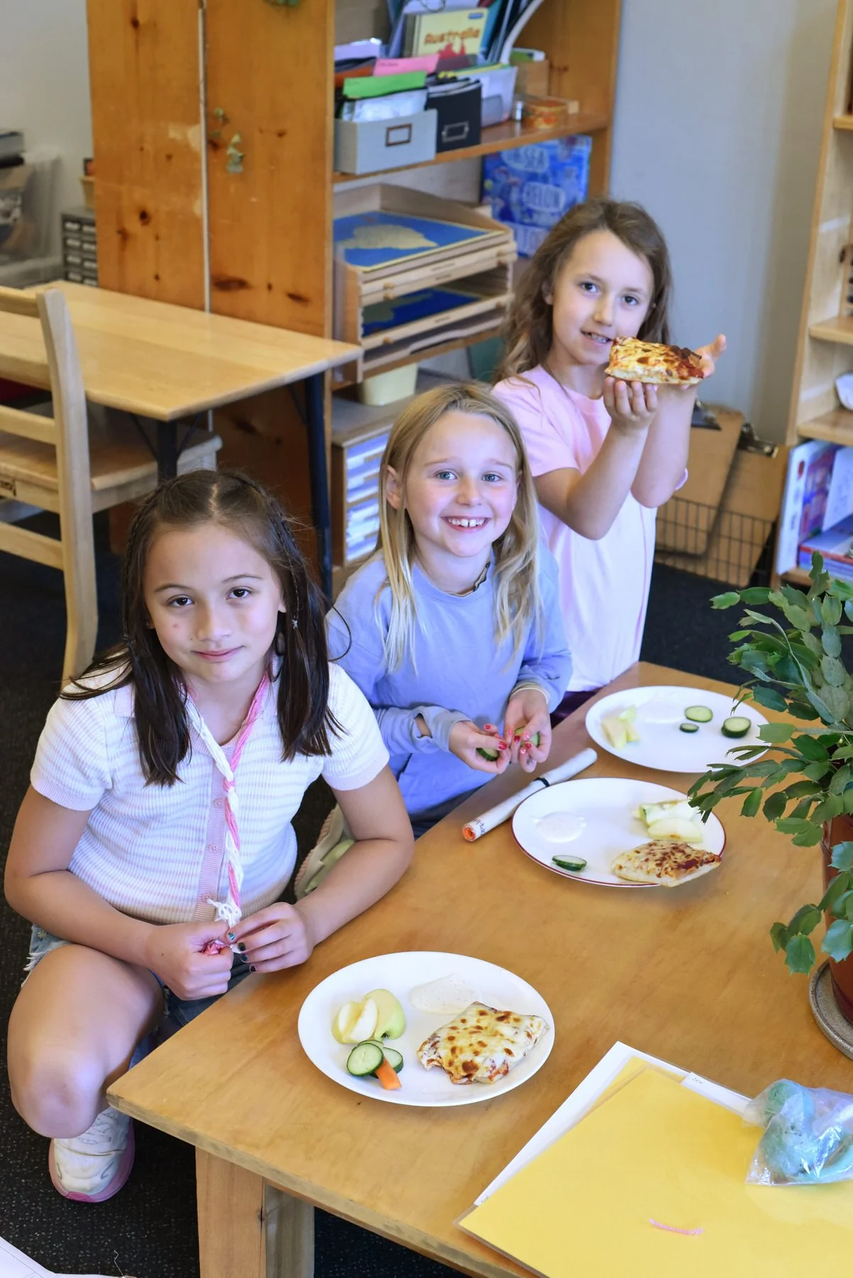 All classrooms have regularly scheduled gym time to allow for healthy physical activity. Starting in Kindergarten, students get to experience more specials outside their classroom, including daily Physical Education and monthly Art and Music. Elementary students have daily and weekly lessons in Physical Education, Visual Arts, Music, and Spanish. Kitchen Classroom, and Della Terra (gardening and botany) are also experienced.